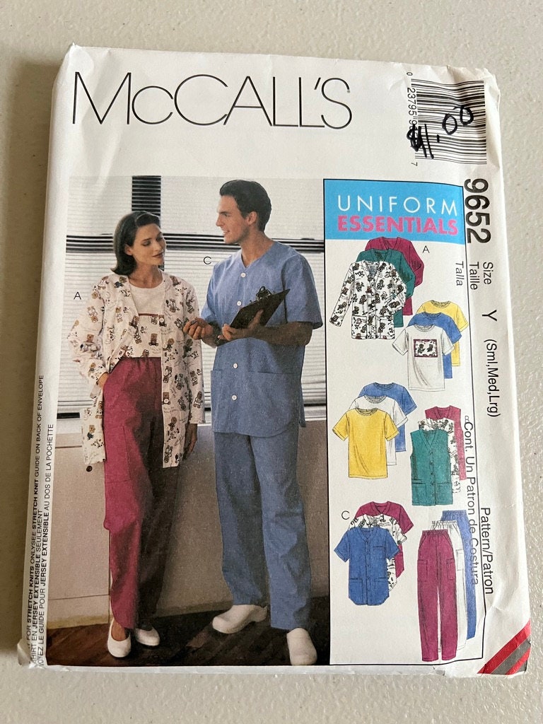 A Scrubs Pattern Collarless Top Buttoned Jacket Or Vest Etsy Scrubs Pattern Pinafore Pattern Scrub Tops
