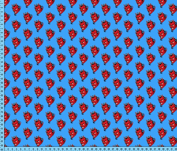 Red Devil On Blue Fabric Pattern Novelty Design Printed By Etsy